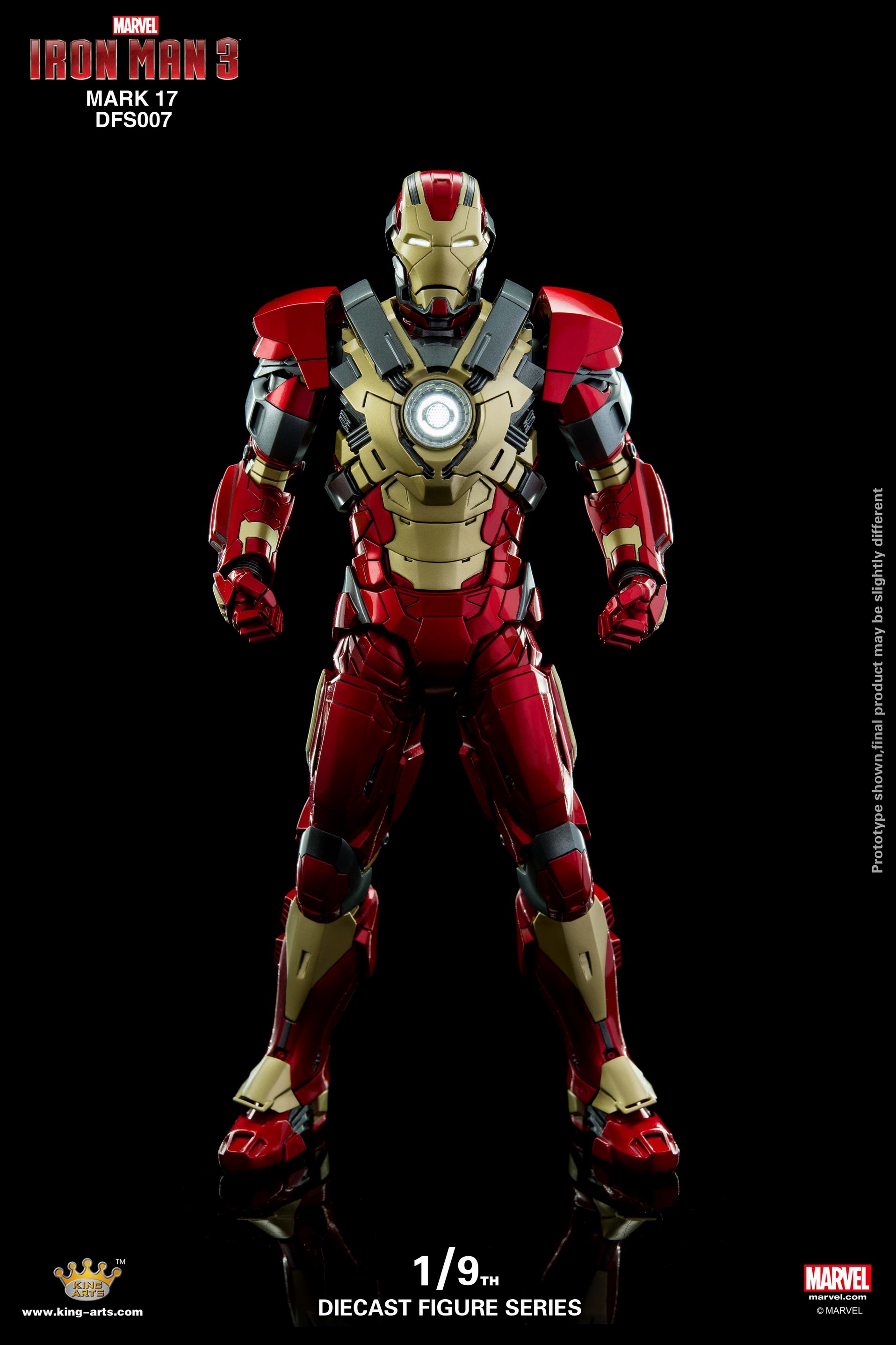 King Arts - 1/9比例 合金可动人偶系列 合金可动钢铁侠MK17 (DFS007) 产品简介 钢铁装甲Mark17,又名“破心者”,是一款注重冲击能量的装甲,所以他配备了超大炮击型胸灯反应炉。独特造型,红金金属配色,令他 ...